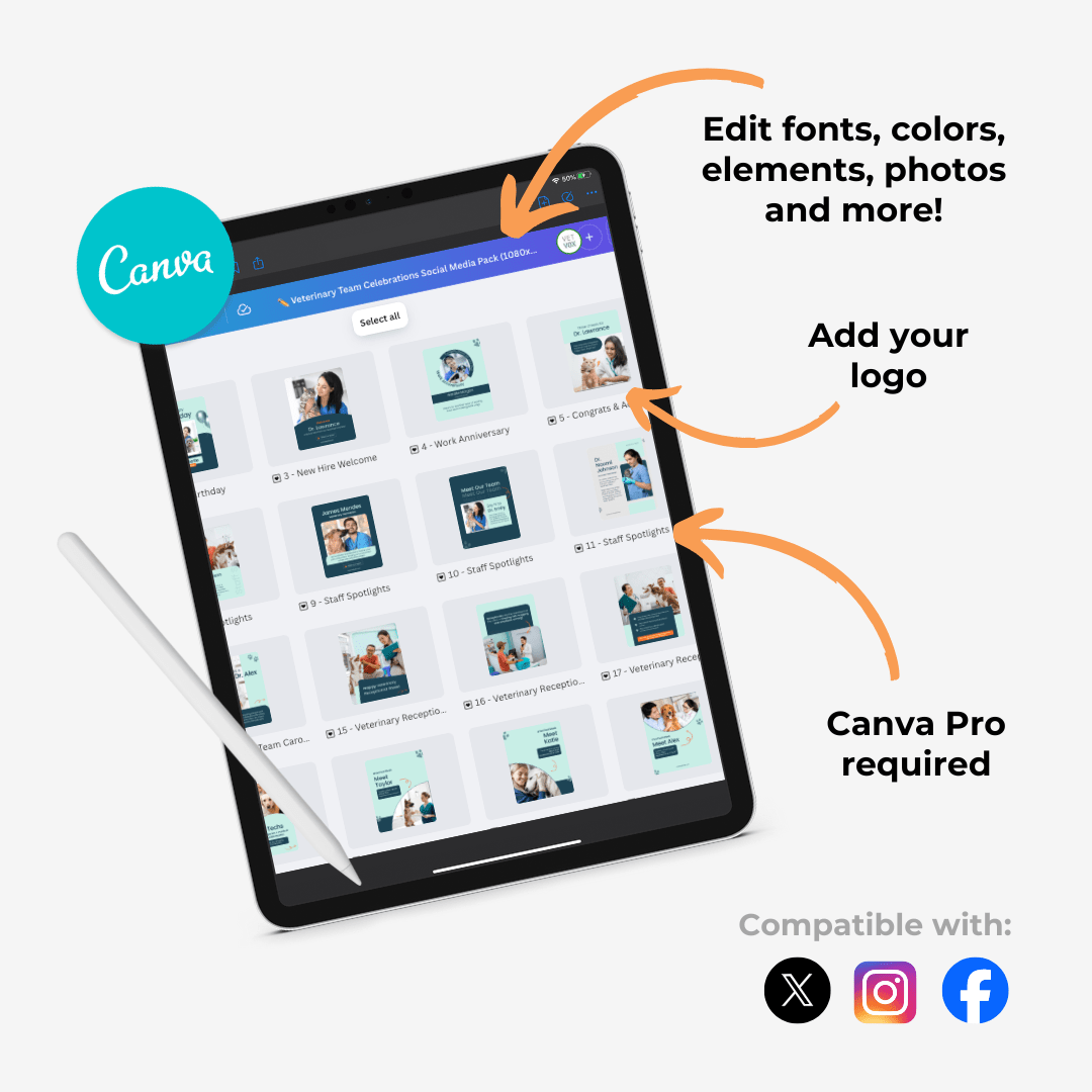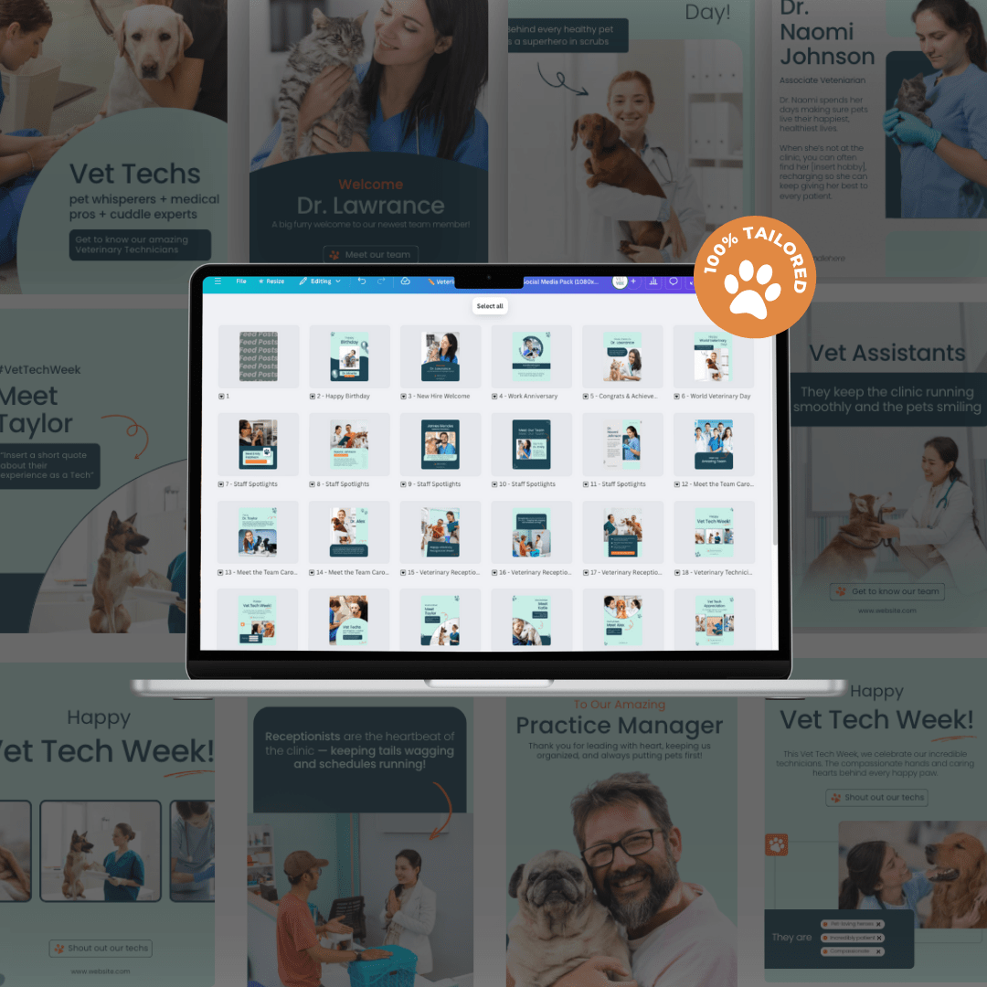 Your veterinary team is the heart of your clinic! Celebrating them on social media helps boost morale, show appreciation, and connect with your community. This pack gives you everything you need to shine a spotlight on your team — without starting from scratch.